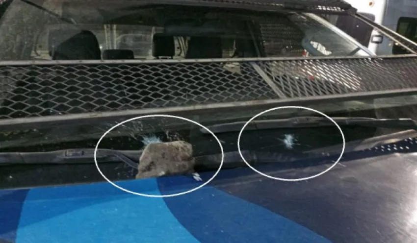 Debido a la magnitud de la agresión, ambos policías debieron escapar bajo una «lluvia» de elementos contundentes que impactaron en el vehículo, ocasionando la rotura en un parabrisas, una mica y abolladuras.