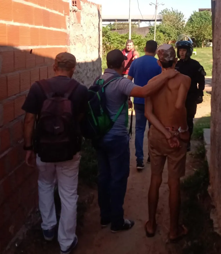 Fue cerca de las 10 de la mañana, cuando personal del GRIM 2 logró identificar una posible ubicación de los elementos denunciados como robados por el párroco de la iglesia ubicada en la intersección de las calles Los Laureles y Renacimiento. La pesquisa llevó a los policías a demorar a uno de los sospechosos identificado como G. I. Caballero, en la zona de pasillos de un asentamiento situado por pasaje Añasco, a metros de la avenida Cartagena en el barrio 9 de Julio.